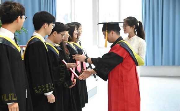 典礼在庄严的国歌声中拉开序幕。院长孙志强宣读了2023年学院获得博士、硕士、学士学位的毕业生名单。彭春丽副书记宣读学院优秀毕业生表彰决定,并由廖胜明书记、孙志强院长为获奖代表颁发证书。接着,刘志强副院长、彭春丽副书记分别为优秀本科毕业生代表、志愿服务基层优秀毕业生颁发证书。