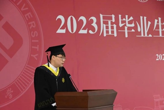 随后,博士研究生代表王娅琼,本科毕业生代表马昌昊也在此表达出了心底的感激与不舍。马昌昊同学回首本科四年生活,表达了对同学的不舍、对老师的感谢与对未来的展望,能源学子在“知行合一”精神的指引下,要以饱满的战斗激情,躬身实践,服务社会;在“经世致用”精神的鼓舞下,要以中南人特有的姿态,奉献青春,实现自我。王娅琼同学说道,现在的离别意味着一段新征程的开始。无论去向何方,有何际遇,都要时刻谨记母校“知行合一、经世致用”的校训,力行“向善、求真、唯美、有容”的校风,不忘初心,砥砺前行。