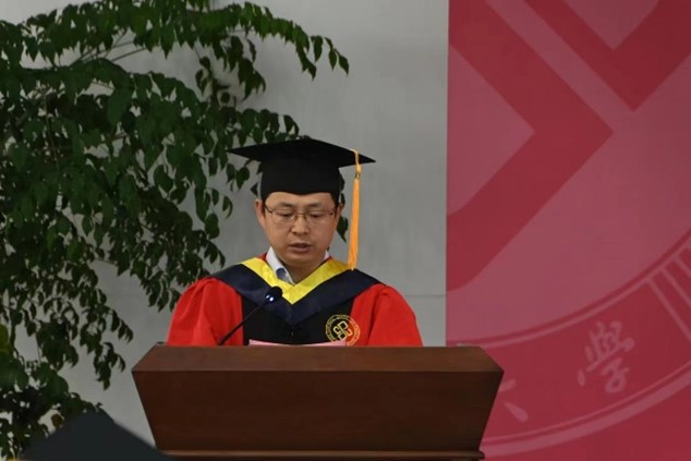 党委书记廖胜明饱含深情的讲话,表现出了对毕业生的无限希冀与满满祝福。他寄语毕业生要做一个积极向上追求卓越的人、做一个有担当的人、做一个与人为善的人,最重要的是要做一个身心健康的人。