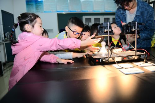 接着,小朋友们来到物理楼109,新能源本科生王依琳向他们讲解能源危机的科普课,在科普课上,小朋友们听得十分认真,也积极回答问题,他们的疑问被一一解答后,脸上洋溢着开心与满足。