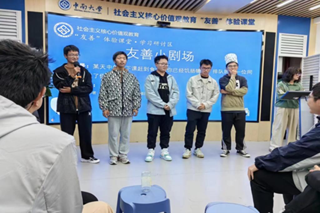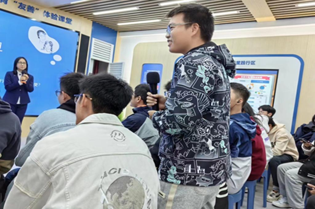 除了在这三大板块进行学习,同学们还进行了友善测试、友善小剧场等活动。值得一提的是,在讲解员的引导下,同学们对生活中的不友善行为进行了分析与讨论,如:乱拔别人电动车充电器、在宿舍打游戏影响室友休息等。同时,同学们也发现了生活中的友善行为,如:提醒室友上课、主动参加志愿活动等。