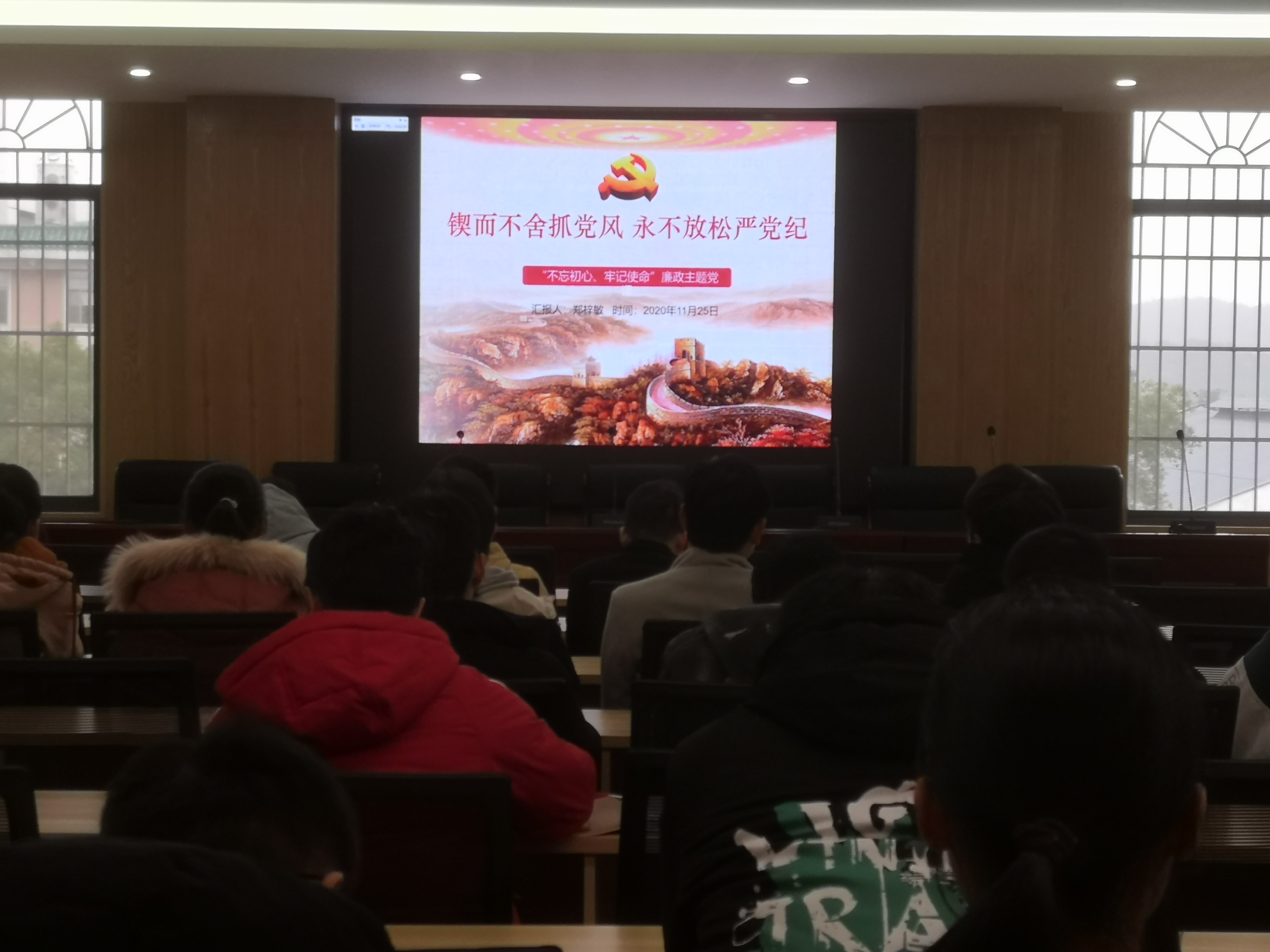会议伊始,党支部副书记郑梓敏就“不忘初心,牢记使命”廉政主题展开汇报。郑梓敏分别从学习习近平总书记廉政精神、“ 打虎、拍蝇、猎狐”和严守政治纪律,践行“ 两个维护”等三个部分展开。郑梓敏表示,党的十八大以来,习近平总书记站在党和国家工作全局的高度,全面推进党的建设,坚持全面从严治党,发表了一系列重要论述,深刻阐释了党风廉政建设和反腐败斗争的重大理论问题和实践问题,为新形势下深入推进党风廉政建设和反腐败斗争提供了思想武器和行动指南。郑梓敏还强调,反腐真正的考验是中共能否清除低级别官员中的猖獗腐败。从长期看,反腐的命运将取决于拍“ 苍蝇”,而非打“ 老虎”。为了呼吁各位党员同志严守政治纪律,郑梓敏指出,要树立纪律规矩的意识、明确纪律规矩的标准、严格纪律规矩的实施。