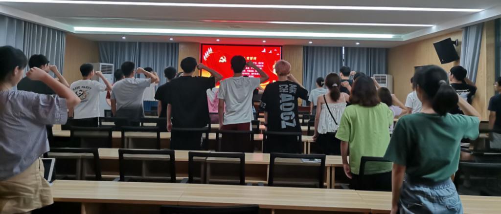 活动接近尾声,全体起立,与会同志在在杨凯博同志的带领下重温了入党誓词,于铮铮誓言中铭记初心,牢记使命,永葆共产党人的先进与纯洁。
