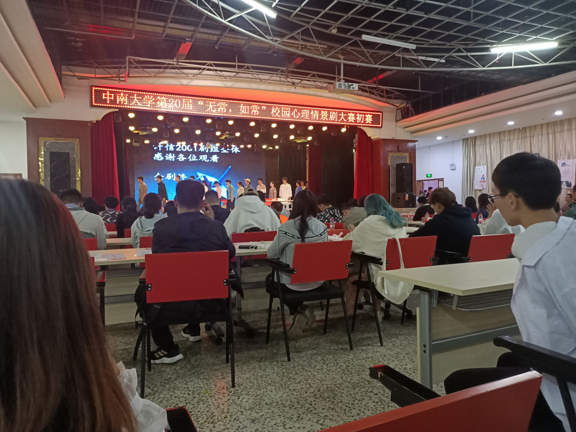 随后,我院出演的心理剧展示了两个互不相识的陌生人,一同遭遇了人生中的无常,而命运让他们将梦想合二为一。一方背负着生命的延续,一方延续着梦想和希望。两颗心,在无常面前紧紧依偎;两个人,在命运的洪流中奋勇前进。终于,无常化为如常,阴霾散去,春暖花开。演员们以其真挚的情感为观众展示了人生无常,世事难料,但是我们依旧可以用生命之火点亮希望之光。那些出现在生命无法预知的苦难,我们称之为命途多舛,但我们依旧选择淡然,然后继续前行。最后,在各院优秀代表队的激烈角逐中,此次校园心理情景剧初赛圆满落幕。