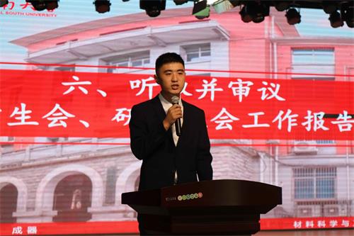 随后材料学院学生会主席马思远和研究生会主席姜宗好分别进行工作汇报。马思远说到,材料学院在校学生会和院团委的指导下,做到“思想引领,旗帜鲜明”,同时营造优良的学风建设环境,强化服务学生权益的意识,注重以文化人,开展多样文化活动。相信材料学院学生会在今后会继续怀揣高昂的工作热情,全心全意为同学服务。姜宗好表示,材料学院研究生会坚持思想引领,坚持依法依章程展开工作,以服务学生为己任。在党委和学联的正确领导下,团委的具体指导下,研会将不辱时代使命,不负同学期望,为william威廉英国官网材料学科的双一流建设和实现中华民族的伟大复兴贡献青春智慧。