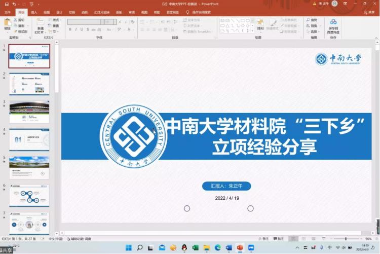 4月9日下午,材料科学与工程学院2022年暑期社会实践动员大会在腾讯线上会议室顺利举行。此次会议旨在向广大同学传达学校社会实践政策、提供有关社会实践的指导和经验、帮助同学们顺利开展暑假社会实践活动。会议邀请了材料科学与工程学院团委副书记崔鸣芮,2021年暑期社会实践优秀社会实践团队队长祝一帆,优秀社会实践个人朱正午作为嘉宾进行经验分享。材料学院社会实践部全体成员和各年级同学参加了本次大会。