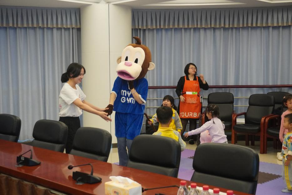 本次活动在室内事先准备的拼图地垫上展开,包括亲子舞蹈、手偶剧表演、亲子互动三个环节,通过不同的形式的游戏互动,促进了亲子间和谐关系的建立,给老师和及其宝宝们提供了好的机会去更加深入了解彼此,让他们的关系变得更加默契。在亲子舞蹈环节中,猴子玩偶的陪伴和舞蹈音乐的渲染,极大吸引了入场宝宝们的注意力,在家长的陪同下,宝宝们更积极参与其中,亲子们迅速进入了活动状态。