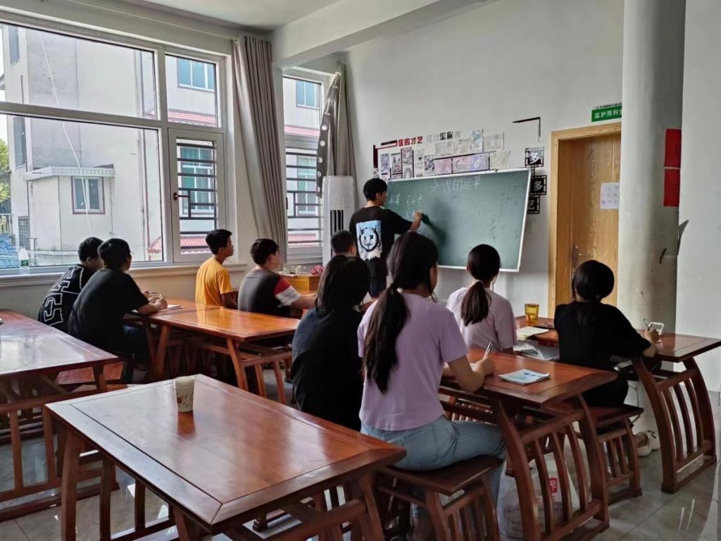 志愿者冯星宇在教学七年级学生数学的第一堂课上,为同学们讲解了分式的计算,虽然天气炎热,但是同学们学习的热情不减。在课堂上,同学们认真听讲,积极作答,良好的学习氛围深深打动了志愿者们的心,也激发了志愿者们的热情。下午,志愿者唐晓璐为五年级学生带来了一场生动有趣的英语课堂,在唐老师温柔细心的教导下,同学们摒弃了羞涩,逐渐开朗起来,一阵阵的英语朗读声从石羊塘镇国学馆传出。忙碌的日子里,时间总是如白驹过隙,william威廉英国官网志愿服务团队暑期支教的第一天伴着孩子们琅琅的读书声圆满结束。