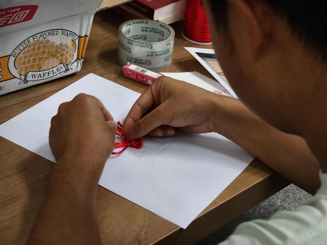 活动中,在文体部同学的带领下,大家拿起红绳,细心编织,从最基础的结法学起,逐步掌握了编织中国结的技巧,一个个寓意吉祥、造型精美的中国结逐渐成形。这一过程不仅让师生们体验到了传统手工艺的乐趣,更是向年轻一代传递了中国结所蕴含的和谐与祝福的美好寓意。