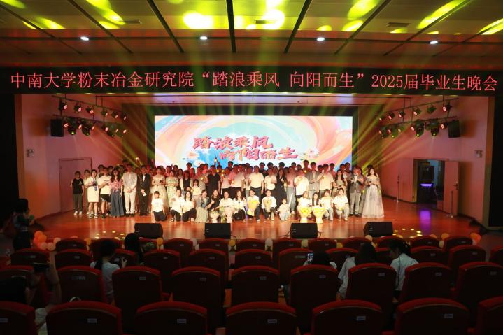 5月24日晚,粉末冶金研究院于潇湘校区毓秀楼和声堂举办“踏浪乘风,向阳而生”2025届毕业生晚会。院党委书记王德志、党委副书记黄曦、副院长李专、毕业年级各班班导师及学工办辅导员们与2025届毕业生共同参加本次晚会。