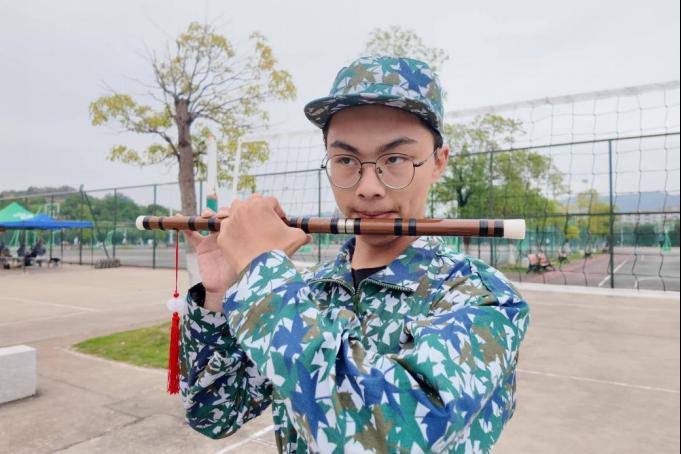 接着,谢安楠同学献上竹笛独奏《牧民新歌》,清越悠扬的笛声回荡在训练场上空,引来阵阵掌声。同学们还相继演绎了《稻香》《夜空中最亮的星》等经典曲目。最后,全场合唱《后来》将现场气氛推向高潮,也为演出画上温暖而有力的句号。