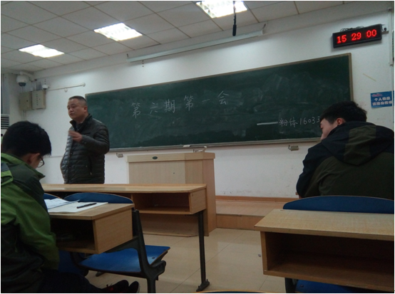 最后,班导师刘如铁老师对本次班会进行了补充与总结。他就心理素质方面进行了班会内容的补充,并指出班委应时刻观察同学们的心理状况并组织进行心理素质的培训,提高同学们的心理承受能力。接着,他强调,现在就应该开始规划自己的人生,无论是读研工作还是出国,选择很重要,“人一辈子,看着很长,算算却很短”,如果选择了一条道路就要坚持下去,不要给自己留下遗憾和后悔。