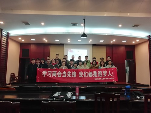 2019年3月22日晚7点,粉末冶金研究院本科生粉体专业党支部在研究院工程会议中心召开了主题为“学习两会当先锋,我们都是追梦人”的特色党日活动。本次活动由支部副书记石浩男主持,支部全体党员同志参加。