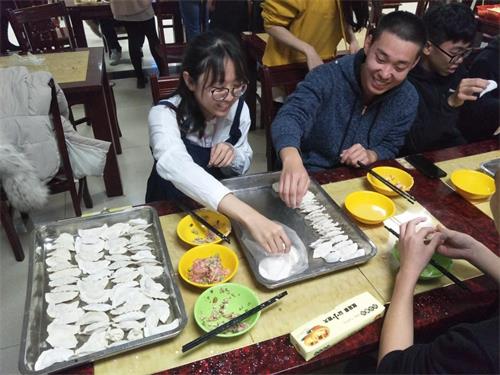 活动一开始,大家便积极参与进来。首先是调制饺子馅,每个人根据自己的口味自由发挥调配馅料。接着就是重头戏——包饺子,各位成员齐齐上阵,捻皮、填馅、塑型,现场弥漫着欢乐祥和的气息,在这欢声笑语的气氛中,同学们包出自己中意的杰作。最后是煮饺子,大家都迫不及待地将各自完成的佳作拿到后厨进行烹煮,以便能吃到香喷喷的饺子。