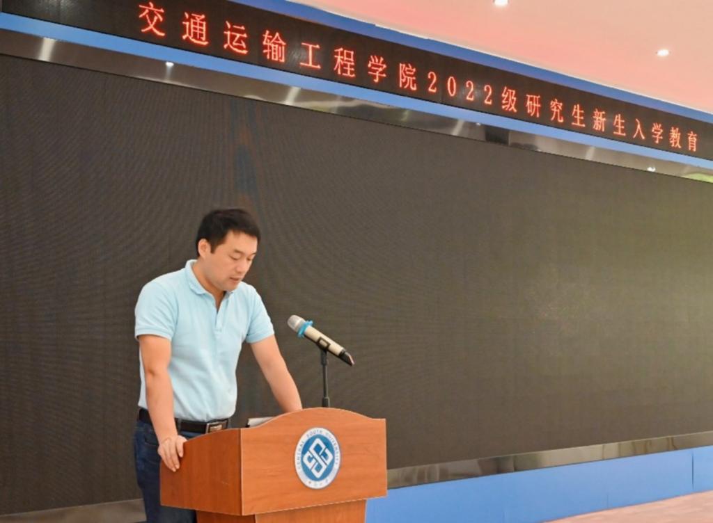 9月22日上午10点,交通运输工程学院2022级研究生新生入学教育在铁道校区立志厅顺利举行。学院党委副书记宋晓东、副院长彭勇、实验室中心主任陈峰、教务老师刘艺萱、研究生辅导员樊佳俊、张佳琪等参加了此次活动。本次活动由张佳琪主持,活动分为校情院情及廉洁教育、研究生资助政策与培养环节介绍、实验室安全教育、研究生日常管理与诚信教育四个环节。