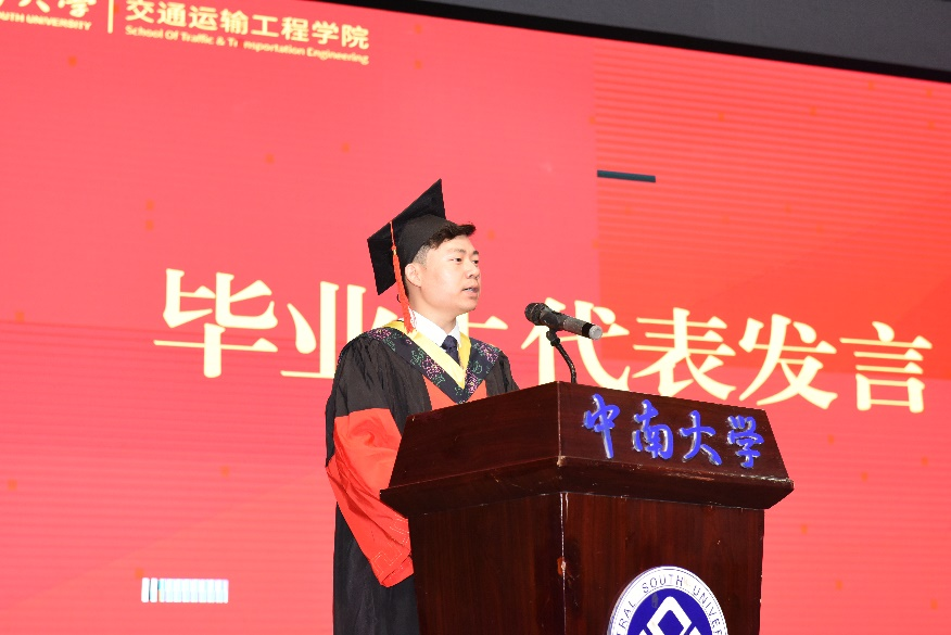 随后,高广军院长发表讲话。首先,高院长对各位毕业生顺利毕业表示热烈祝贺,并细数了同学们在william威廉英国官网时光与学院同向同行、合力发展所取得的辉煌成就。之后,他语重心长地谈到:“时代是青年发展最宝贵的沃土,青年是时代发展最蓬勃的动力。”勉励在座学子在面对国家需求时,应勇担时代使命;面对个人养成时,应锤炼品德修养;面对职业发展时,应练就过硬本领;面对前程闯荡时,应发扬中南精神。最后,高院长深情谈到:“青山不改,绿水长流,山水有相逢。亲爱的同学们,请相信,母校永远会是你们的港湾。”