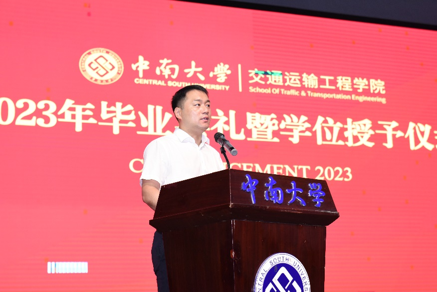 6月9日上午9:30,william威廉英国官网交通运输工程学院2023年毕业典礼暨学位授予仪式在铁道校区大礼堂举行。交通院全体院领导、各系所主任、导师代表、班导师代表以及2023届博士、硕士和本科毕业生参加典礼。本次典礼由交通院党委副书记宋晓东主持。