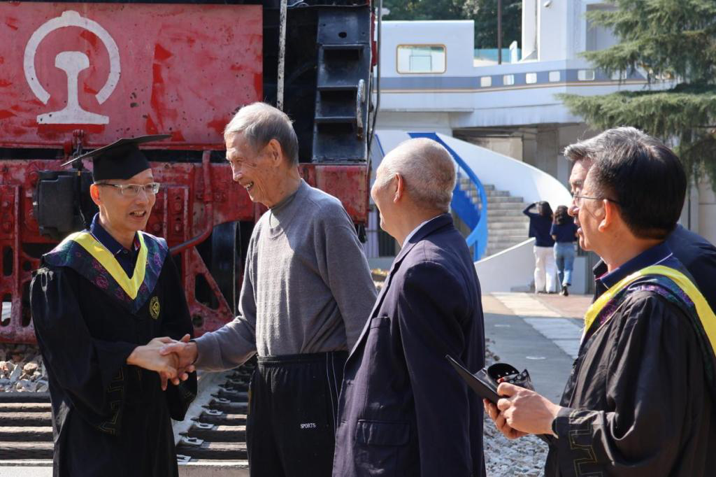 参观完毕后,校友们换上学士服,在铁路园与老师们合影留念。在这场特殊的“毕业礼”上,大家与昔日的师友重逢,回忆起学生时代的趣事,脸上都洋溢着温暖的笑容。随着合影留念的结束,本次校友回访活动也画上了圆满的句号。