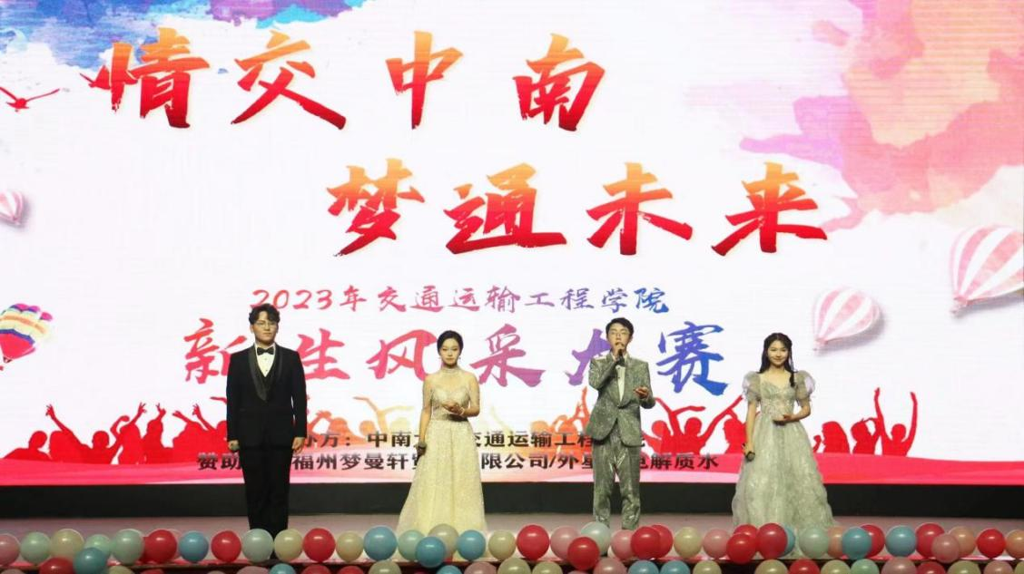 12月3日晚,交通运输工程学院于南校礼堂举办“情交中南,梦通未来”2023级新生风采大赛。铁道校区管委会副主任张英贵,学院党委副书记李苑,副院长彭勇、韩锟,各年级辅导员以及2023级全体新生参加本次活动。本次大赛由王者舟、梅子坤、何若婷、方钦涵主持。