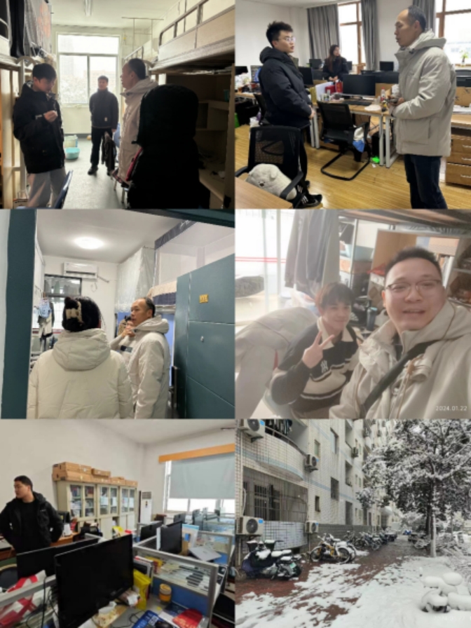 22日上午,学院党委副书记李苑、各年级辅导员深入研究生实验室、学生寝室以及学生宿舍楼周边,切实开展安全风险隐患集中排查,做好雨雪冰冻等极端天气下的出行安全教育。