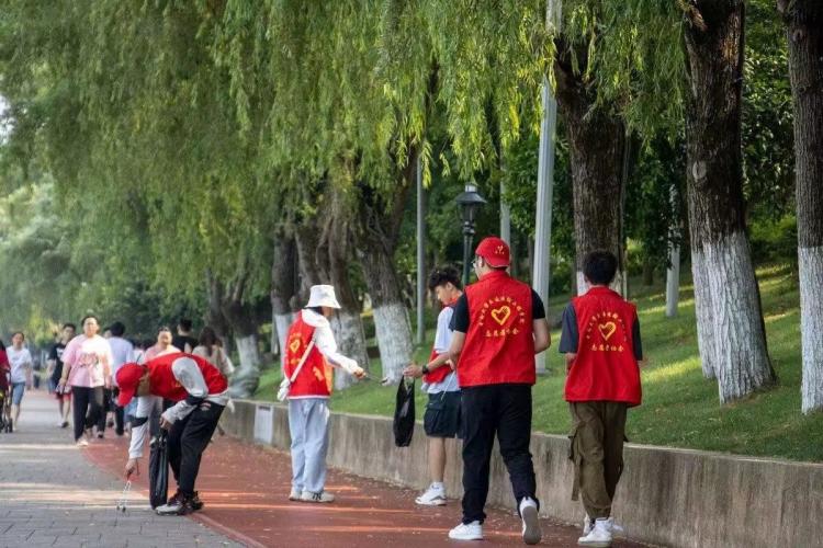 第二部分为“橘洲花young行,益起向未来”志愿捡跑活动。自2019年起,我院与橘子洲景区携手开展此项志愿服务活动。今年,活动以全新的形式呈现,创新地将“慢跑”与“捡拾”融为一体。参与其中的志愿者们不仅能够在活动中体验到志愿服务的乐趣,还能在慢跑的过程中锻炼身体,强健体魄。活动进行过程中,志愿者们在积极捡拾垃圾的同时,还对不文明行为进行友好劝导,为游客解答疑问,努力维护现场的秩序。志愿者们以实际行动展现了我院学子积极向上的精神面貌,传递了绿色、健康、文明的生态环保理念。