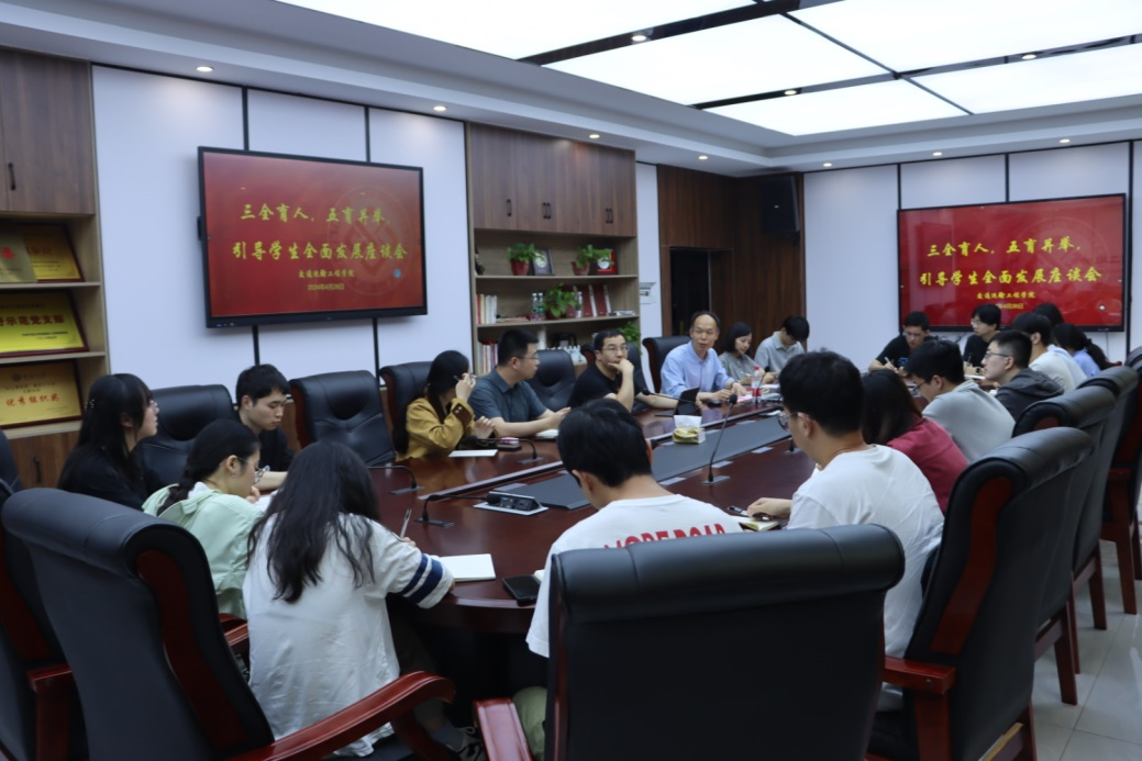 4月26日下午,交通运输工程学院“三全育人,五育并举,引导学生全面发展”座谈会于铁道校区交通楼119举行,学院各系教师代表、本硕博学生代表参会,会议由学院党委副书记李苑主持。