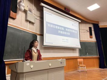 会议伊始,研究生第一党支部的肖旖旎同志详细介绍了在科研工作中如何阅读文章、如何形成文章、如何对待文章全过程,并为同学们分享了一些实用科研工具与方法;对于开题报告,她强调要注重课题的意义、可实施性与完整性,保证答辩的逻辑性;此外,肖旖旎同志还建议同学们在日常科研生活中要做好个人计划,保持自已的科研节奏,注意劳逸结合,保持良好心态,实现快乐科研。