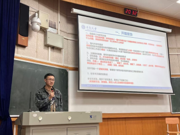 最后,研究生第三党支部的杜京润同志着重于开题报告的结构框架以及撰写过程中需注意的细节问题进行了分享,不仅补充完善了前面两位主讲人的分享内容,还以具体的写作要点为切入点解决了同学们实际撰写过程中所遇到的问题。作为即将毕业的学长,杜京润同志还鼓励同学们要提前思考自己的职业方向,选择最适合自己的路并为此做好充分的准备。