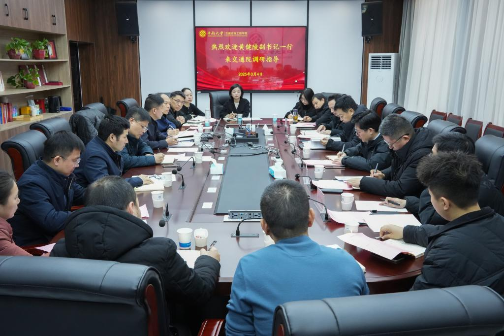 3月4日上午,校党委副书记黄健陵一行来到交通运输工程学院调研指导,校组织部部长田庆华、党校常务副校长赵永正、组织部正处级组织员凌春雨、校办公室副主任尹翔、组织部副部长穆克朗陪同调研。学院全体领导班子,教职工及学生代表参会。座谈会由学院党委书记袁世平主持。