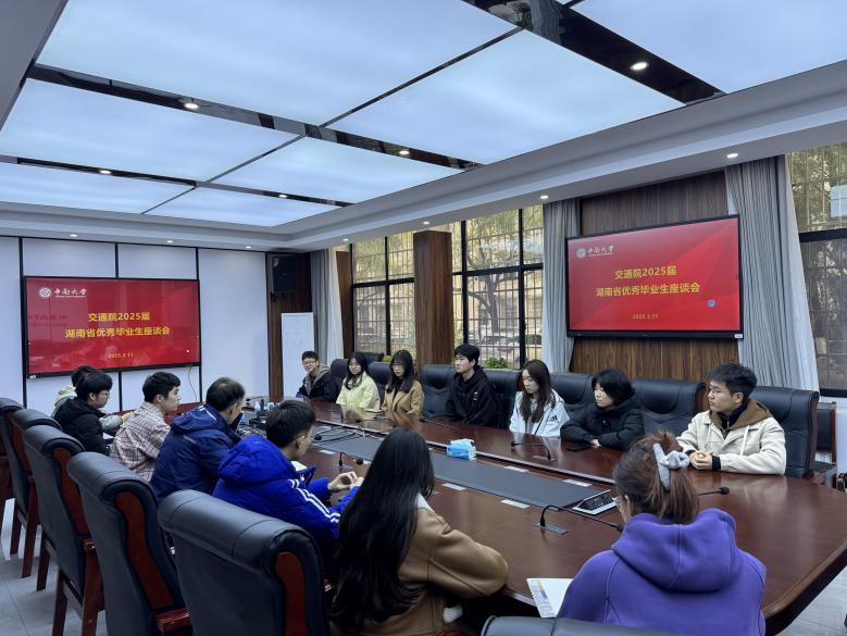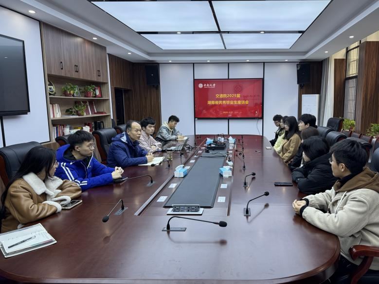 3月11日下午,交通运输工程学院2025届湖南省优秀毕业生座谈会于交通楼119举行。学院党委副书记李苑,2021级辅导员张健老师以及交通院2025届湖南省优秀毕业生参加本次会议。