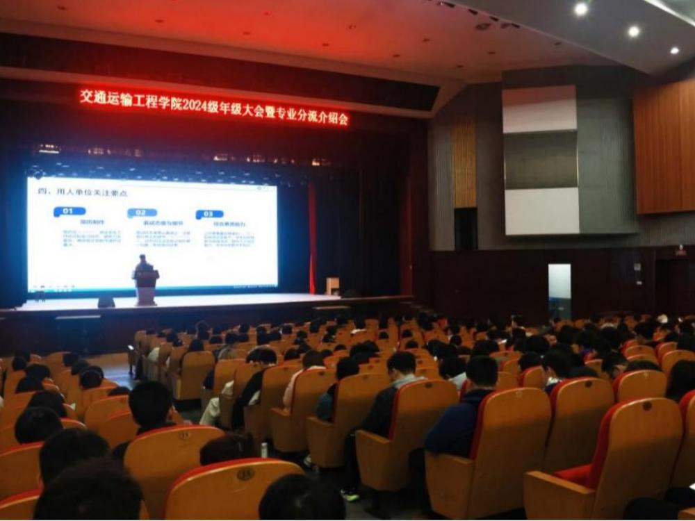 3月12日下午,交通运输工程学院在麓南校区礼堂召开专业分流介绍会,学院党委副书记李苑,副院长陈维亚,交通运输系主任周文梁,交通设备与控制工程系主任谢素超,轨道交通信号与控制系主任李蔚,教务办主任陈文欣,2024级辅导员王尚君、官群雄,以及2024级全体本科生参加。