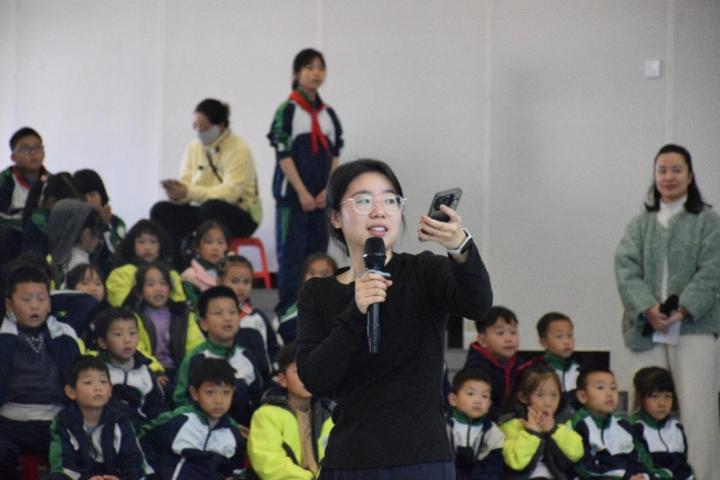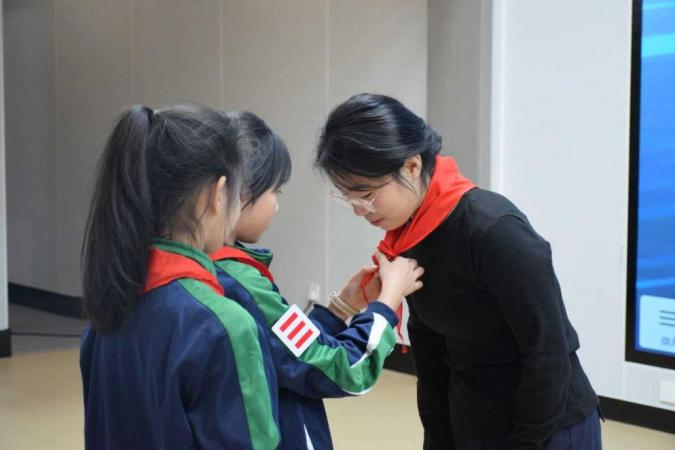 讲座结束后,两名少先队员代表全体学生向王文月大姐姐佩戴红领巾,以表达感谢与敬意。这一温馨的画面,也象征着科学种子在孩子们心里悄悄萌芽。