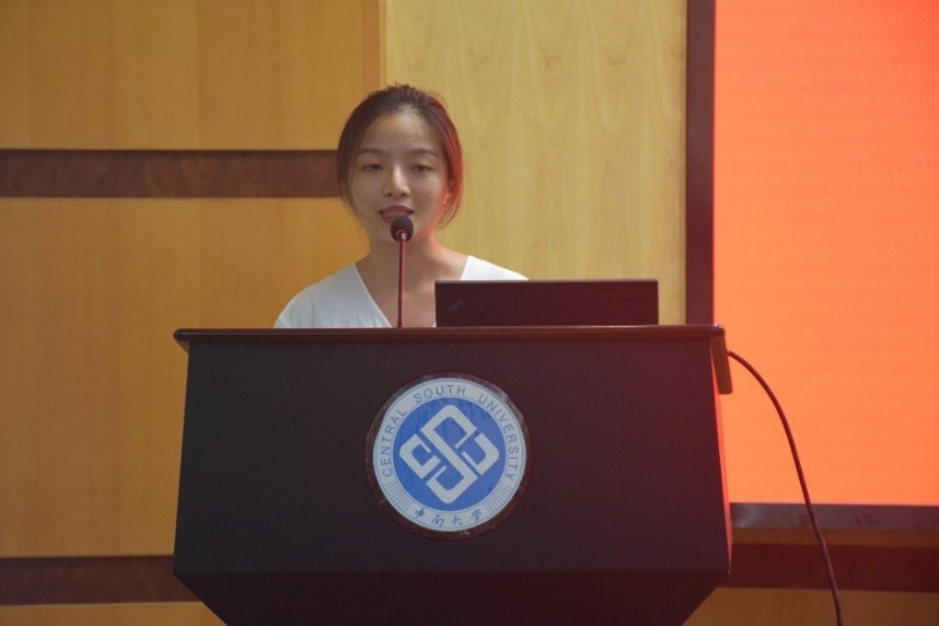 随后,优秀共产党员代表张佳琪同志上台发言。在重温党的奋斗历程和历史使命之后,张佳琪同志联系自身,回顾了自己将初心和使命融入本职工作的历程。作为一名辅导员,她时刻关注学生的思想动态,抓好学生的思想政治教育,时刻牢记“以人格引领灵魂,以学问开启智慧”,真抓实干;作为一名学生党支部书记,她积极促进支部融合,定期开展党员教育,落实“不忘初心 牢记使命”主题教育的要求,带领同志们积极踏实建设支部,发挥基层党支部的战斗堡垒作用和党员的先锋模范作用。
