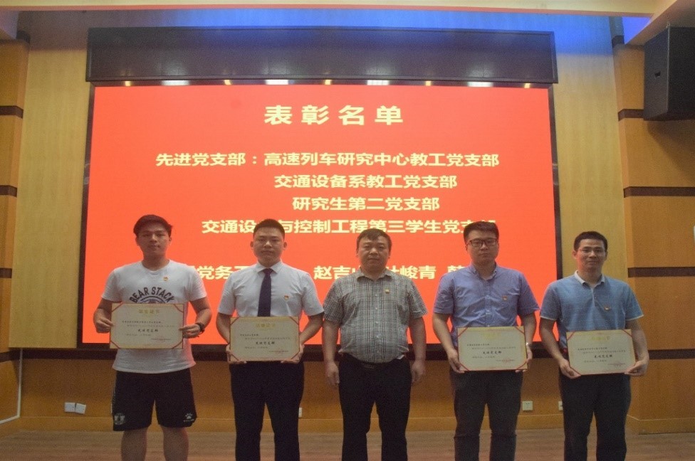 会议在庄严的国歌声中拉开序幕,交通院党委副书记、院长高广军宣读了学院党委的“七一”表彰决定。为鼓励先进,树立典型,学院党委研究决定对高速列车研究中心教工党支部等4个先进党支部、叶峻青等3位优秀党务工作者、戴永宝等15名优秀共产党员予以表彰。高广军院长和贺志军书记为先进集体和个人颁奖,以此勉励受到表彰的先进党支部、优秀共产党员和优秀党务工作者珍惜荣誉,再接再厉,永葆共产党人的先进性,为推进学院各项事业又快又好发展,再创佳绩、再立新功。