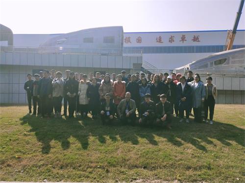 由于时间有限,同学们在最后粗略地参观了一些碰撞吸能机构。参观结束后,同学们在一个火车头前与张建副教授合影留念。