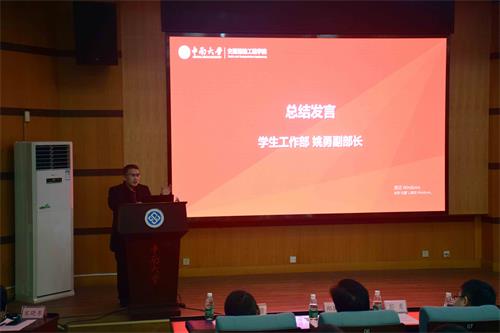 大会最后,学工部姚勇副部长作总结发言,他表示,交通院这一年以来的丰硕发展成果和交院学子积极向上的精神面貌让他深受感动,他鼓励交院全体学子在新的一年里更加努力、更加优秀。