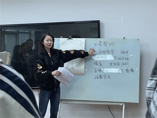 活动中,同学们都做到了像心灵契约所约定的那样,积极参与,认真对待每一个环节。“我们该如何克服困难,独立自主?”、“我们该如何增强团队意识,培养团队协作能力?”、“我们该如何面对大学生活?”,对于这些新生普遍会遇到的问题,同学们都认真思考讨论,也都对大学生活有了更深刻的了解。欢声笑语融化了初来乍到的局促之冰,本次团辅活动旨在增强班级的凝聚力和向心力,帮助同学们进一步了解未来四年将要朝夕相处的伙伴,引导同学们认识自我,发掘自我,完善自我,点亮自我,对于改善同学们的心理健康状况具有重要意义。