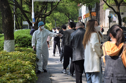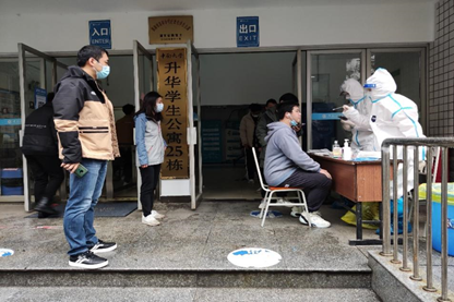 作为攀登楼检测点的组长,李双琳老师协调着整个检测点的工作,从排队、扫码到检测,哪里有问题就去哪里处理,一刻也不停歇。当被问到他的感想时,李双琳老师说:“我不觉得累,反而收获了强烈的集体荣誉感。刚开始开展全员核酸检测工作时,确实出现了一些时间、场地、人员安排等方面的困难,不过经过大家多次协调和配合,最终解决了问题,后续工作的开展也越来越顺利。在整个过程中,我感受到了大家齐心抗疫的信心和决心,也感受到了包容与爱。”