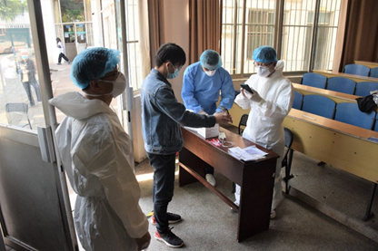 “请同学们注意保持两米距离!”贺志军书记化身“大白”,在队列旁一遍遍地提醒着排队检测的同学们。他表示,自疫情发生以来,学院每一位教职工都积极投身战“疫”工作,在这场无硝烟的战争中贡献力量。