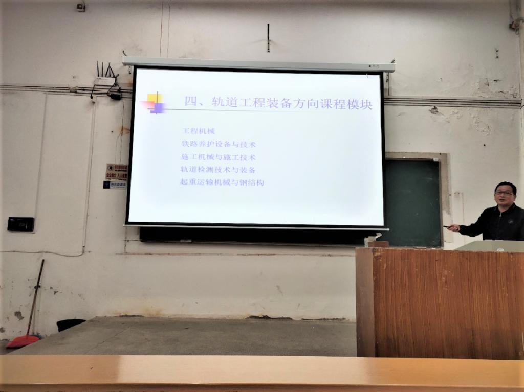 随后,应立军老师则详细介绍了轨道工程装备方向的课程模块、就业方向、教师科研项目。他提到,轨道工程装备方向主要培养学生系统深入掌握轨道交通装备技术实现轨道养护、检测智能化,轨道工程装备专业拥有高速铁路先进装备实验室和铁路工程装备研究所,开展的国家和省部级科研项目取得了多项国家级奖项。