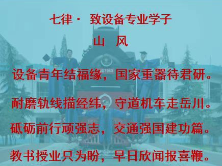 会议最后,章易程老师用一首七律诗表达了对交通设备与控制工程专业2019级学子的期盼,希望同学们能怀着对专业的热爱,对事业的热忱,对学业的热情,投入到今后的学习、工作和生活中,真正展现中南交通学子的风采。