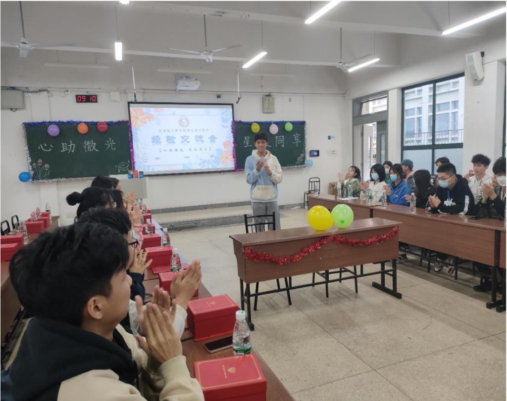 2022年5月1日上午9:00至12:00,由交通院大学生朋辈心理互助会举办的“心助微光,星火同享”经验交流会在A310顺利开展。交通院心助会18、19级学长学姐代表,以及20,21级心助会全体成员参加,新老成员齐聚一堂。本次活动旨在加强心助会新老成员的交流,传授关于学习、工作、生活方面的经验。心助之路,薪火相传。