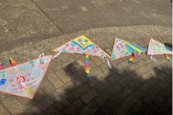 活动最后,支部成员三人一组绘制风筝、书写理想,让风筝与梦想齐飞,纸鸢与祝福高扬。