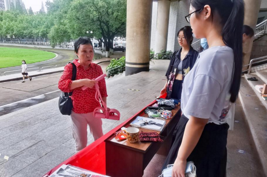 从各式各样的玩偶到成套的旧教辅,从二手键盘到全新的陶瓷杯,支部同志们吆喝、介绍物品、包装、记账,将一件件承载着爱心的商品售卖出去。“前几年常有这样的活动,袜子鞋子啥都卖,价格也实惠,可惜这几年没怎么看到了。”正赶去接孙女的奶奶在义卖摊位前驻足,好奇地询问着各类物品的使用方法,最后带走了一个半人高的玩偶抱枕和迷你按摩器。“要不是因为拿不下了,这些东西我都想买回家哩!谢谢你们让我的孙女有了新的玩具!”奶奶在临走前笑着道别。奶奶的这番话不仅解了同志们的辛劳,还暖了同志们的心。