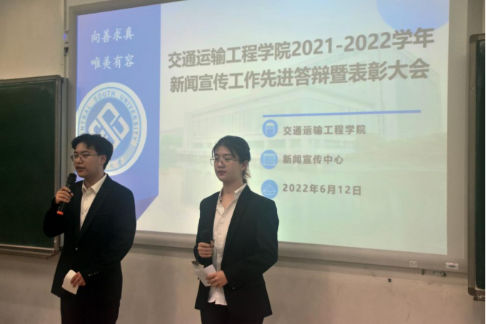 扬帆再启航,共筑新辉煌。本次答辩暨表彰大会既是对过去一学年中涌现的先进个人与先进集体的肯定,也是交通院全体宣传工作者的勉励。在未来的宣传工作中,希望每一个宣传工作者都能够秉承讲好交院故事、传递交院好声音的宣传理念,通过做好宣传工作共同打造交院形象,弘扬交院精神。