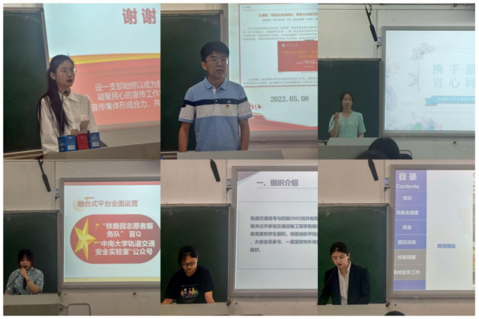 大会伊始,交通设备与控制工程第一学生党支部、研究生第一党支部、交通院朋辈心理互助会、交通院分党校管理部、轨道交通信号与控制2002班、交通运输类2112班依次上台进行新闻宣传先进集体答辩汇报。各集体答辩代表主要从组织建设概况、宣传工作开展形式、网络舆情建设、宣传成果、未来宣传工作展望等各方面作了汇报总结,展示出了各集体过去一年里在宣传工作中取得的丰硕成果,彰显出各集体与众不同的宣传特色与积极良好的工作面貌。在场评委高度肯定了各集体的新闻宣传工作成果,同时,也就各位代表的现场汇报情况分别在新媒体宣传平台建设、PPT制作细节、如何将宣传工作进一步做实等方面进行了点评与建议。
