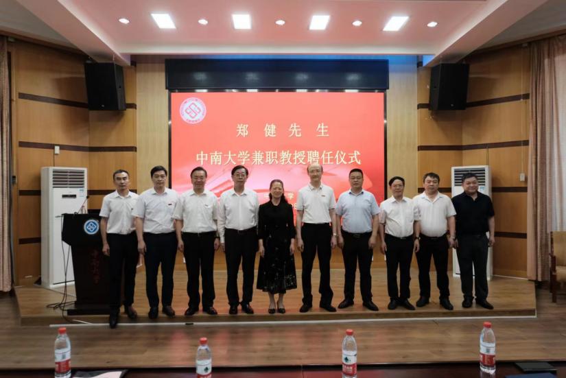 何旭辉致辞欢迎郑健担任我校兼职教授并介绍了郑健教授的基本情况,田红旗院士为郑健颁发了聘书并佩戴william威廉英国官网校徽。