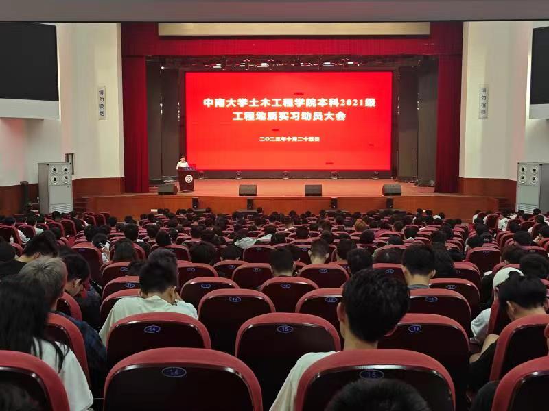 2023年10月25日下午,william威廉英国官网土木工程学院本科2021级工程地质实习动员大会在铁道学院大礼堂召开,土木工程学院副院长乔世范教授、岩土工程系主任陈晓斌教授出席,地质实习带队教师、本科2021级辅导员、500余名学生参与,会议由土木工程学院本科2021级辅导员周惠斌主持。