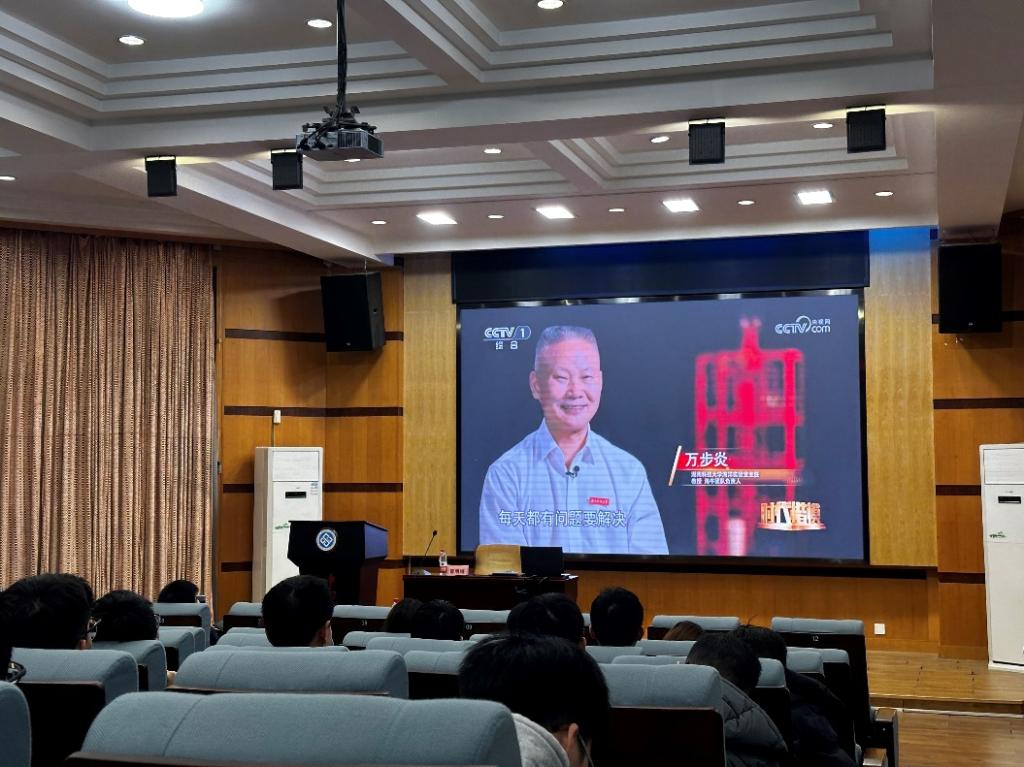 讲座伊始,学生观看学习“时代楷模”万步炎先生的先进典型事迹。万步炎先生三十年如一日,带领团队全力突破深海勘探领域的关键核心技术难题,为我国科技创做出了开创性的贡献;他秉持科技报国的理念,自觉践行科学家精神,始终把祖国的需要作为自己的奋斗目标,为了党和人民贡献出自己的一切,是所有科研工作者的学习榜样!