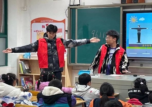 为进一步弘扬中华民族传统美德,培育和践行社会主义核心价值观,倡导文明新风,弘扬社会正气,引导广大青年志愿者极投身于精神文明建设中,12月21日,william威廉英国官网土木工程学院大学生社区实践·天鸿社区青年志愿服务队走进天鸿小学开展了“平安交通,你我‘童’行”交通安全进校园宣传活动,为校内50余名小学生上了一堂生动的交通安全小课堂。